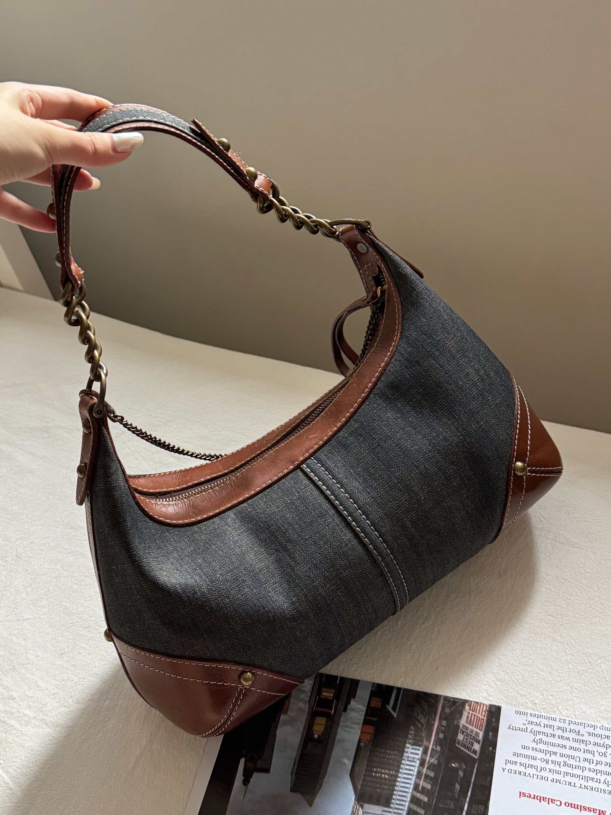 深色牛仔拼粗獷有光澤的牛皮🧳