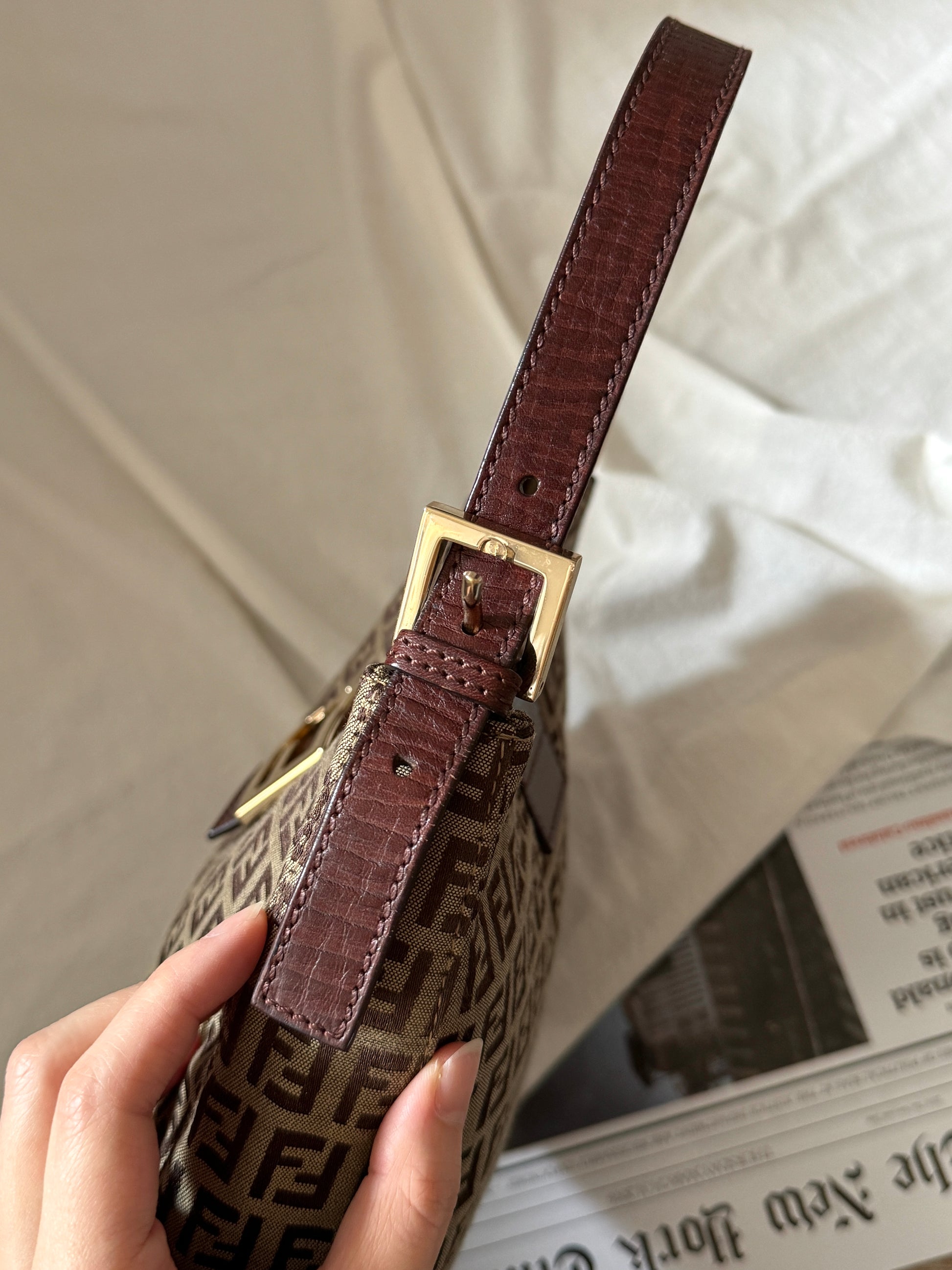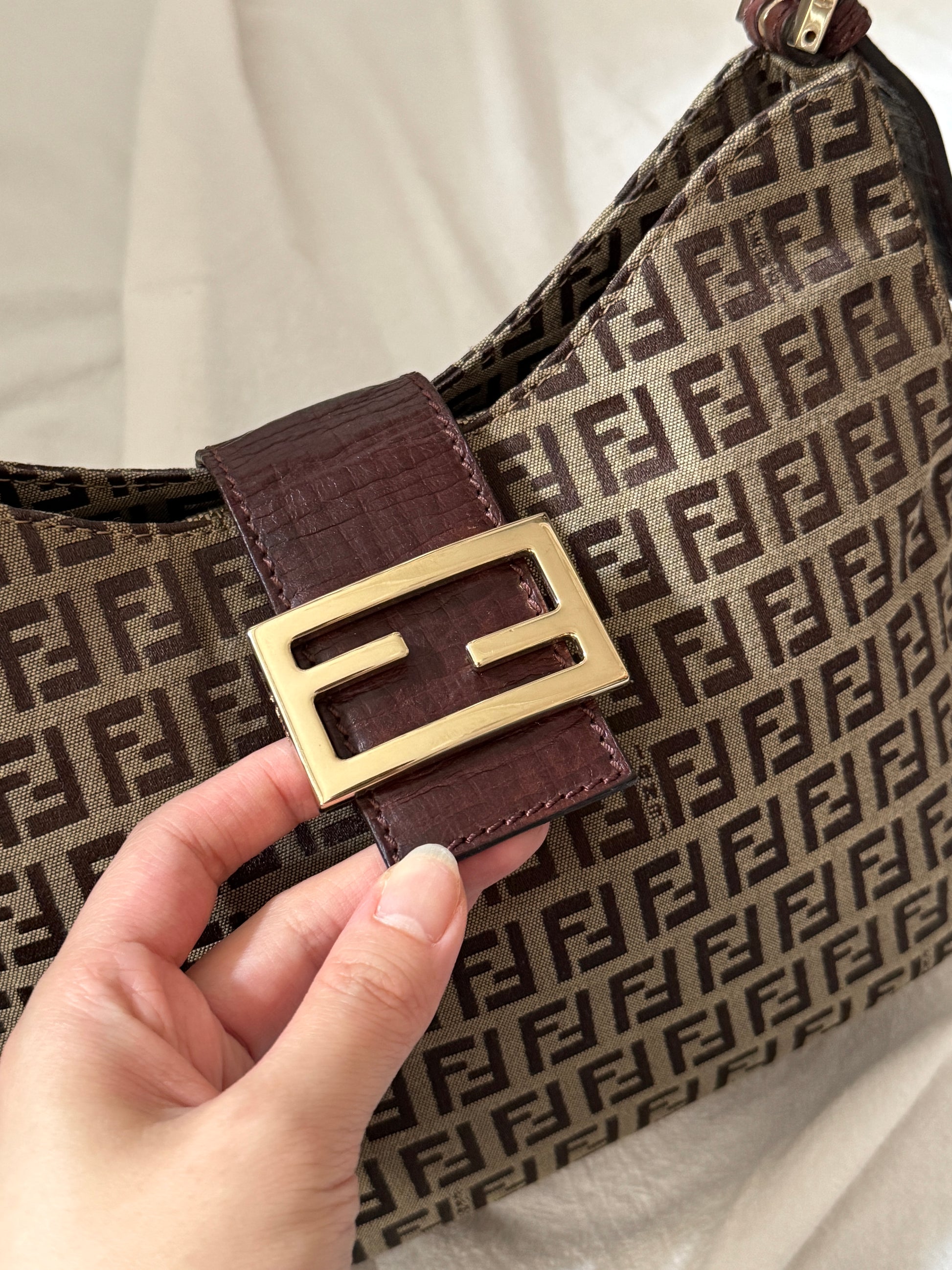 Vintage Fendi 金扣brown zucchino hobo💫